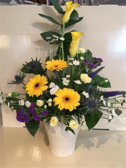 Please note that due to the seasonal availability of flowers it may be necessary to vary individual stems from those shown. Our skilled florists may substitute flowers for one similar in style, quality and value. Where our designs include a sundry item like a vase or basket it may not always be possible to include the exact item as displayed. If such an occasion arises we will make every effort to replace the item with a suitable alternative.