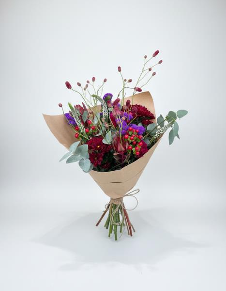A rustic selection of our wild and woderful blooms that we have in stock. Finished in brown paper and string.